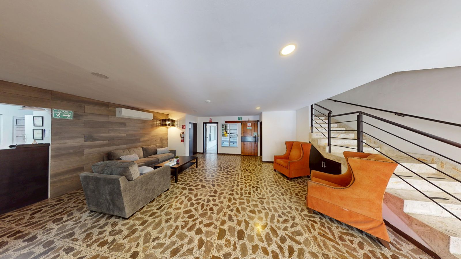 La residencia cuenta con dos niveles, elevador, jardines y habitaciones con baño privado, algunas con patio propio y otras con vista a áreas verdes.
